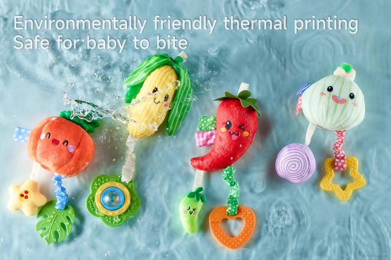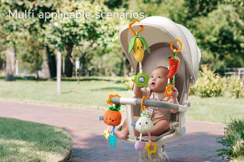 TUMAMA KIDS Car Seat Stroller Hanging Toy Plush Vegetable Rattles for Babies - Sensory Play Toys with Crinkle Sounds Cute Crib Mobile for 0+ Months
