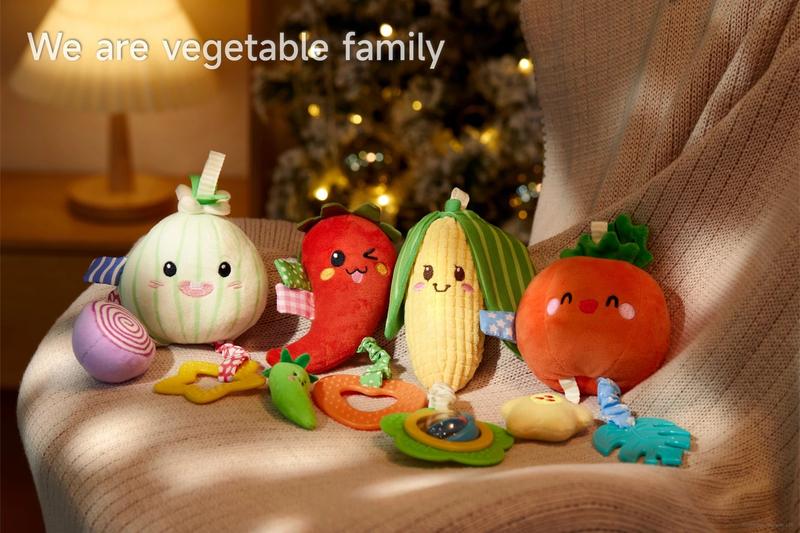 The plush vegetables feature varied textures. Crinkly leaves, smooth surfaces, and soft fabrics stimulate your baby’s sense of touch. This encourages tactile exploration, making it an essential part of your baby’s sensory journey.